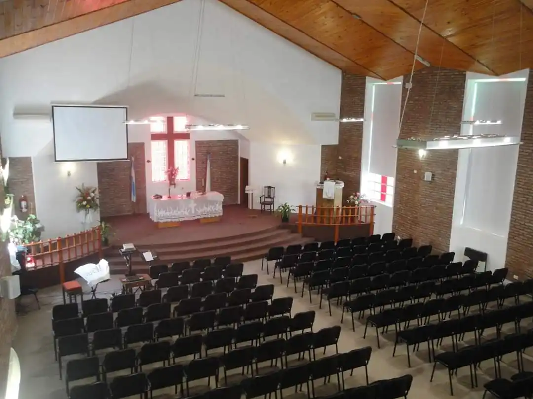 El primer templo fue consagrado por el Pastor Wächter el 17 de septiembre de 1920 y sirvió hasta el año 1924. Por intermedio del Sr. Jorge Pedro Horn se adquirió el terreno actual donde está emplazada la capilla y la casa pastoral. El día 17 de abril de 1924 se inauguró la capilla provista con un campanario al frente. Tiempo después, con la ayuda de la Liga de Damas, el Sr. Santiago Eichhorn y el aporte de la congregación se compró una campana de 152 Kg. tono Re, la cual fue inaugurada el 10 de enero de 1965.