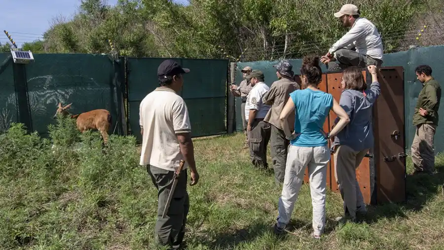 Los ciervos llegaron al Parque Nacional El Impenetrable desde los Esteros del Iberá, en Corrientes, para reintroducir la especie mediante el denominado «rewilding», un concepto que apunta a la idea de restaurar la naturaleza, y que en este caso se llevó adelante con la colaboración del Gobierno provincial, la Administración de Parques Nacionales y la Fundación Rewilding Argentina.