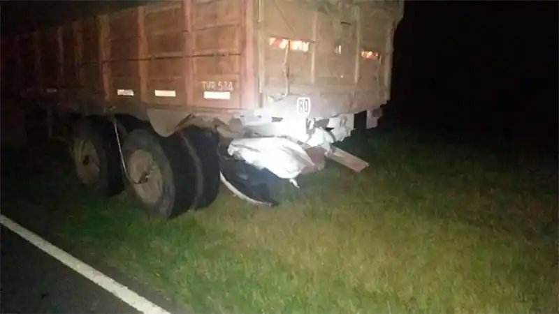 Circulaba sobre la Ruta Nacional 174 cuando chocó desde atrás el acoplado de un camión