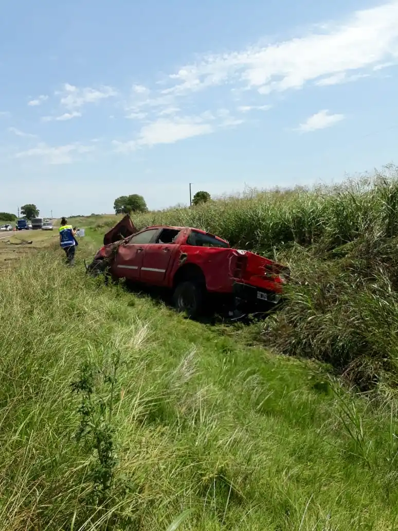 Producto del impacto, el automóvil quedó girado sobre la mano contraria a su sentido de circulación, con todo su frente destruido; mientras que la camioneta, luego de dar un tumbo, quedó sobre la banquina contraria también contrapuesta a su sentido de viaje.