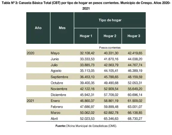 Crespo: En abril una familia con dos hijos necesitó $65.346,63 para no ser pobre