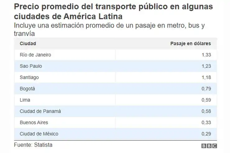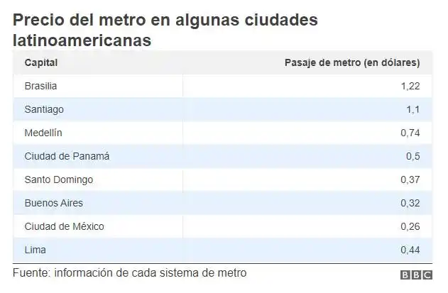 En el caso específico de las tarifas del metro, el precio de un pasaje en Chile en horario pico es de US$1,1. Estas son las tarifas del metro en algunas capitales latinoamericanas (en dólares).