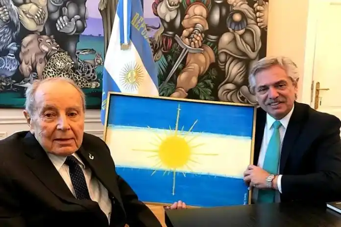 En esta oportunidad, el médico de 95 años visitó al Presidente de la Nación a quien le entregó un cuadro del artista diamantino Mario Lange, quien actualmente se encuentra radicado en la provincia de San Luis, donde al igual que en Entre Ríos y otros puntos de la Argentina ha plasmado gran parte de su obra.
