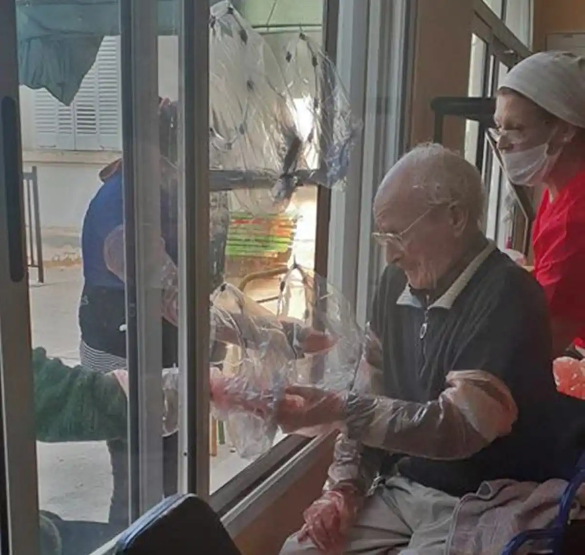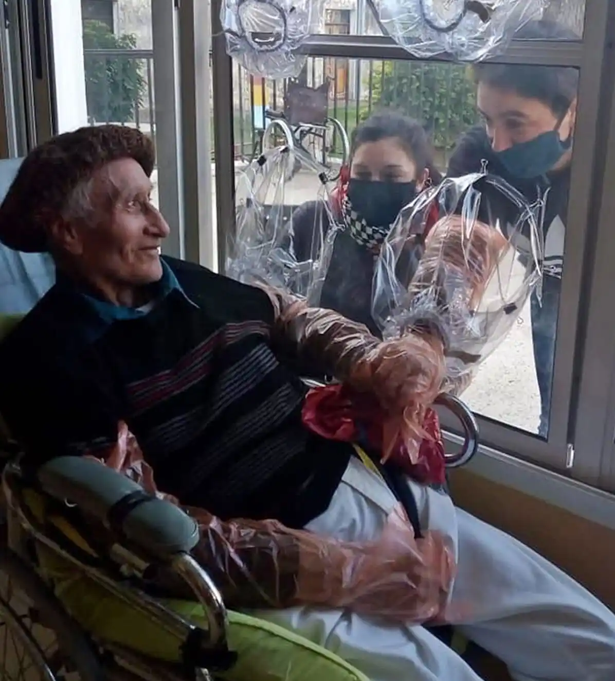 El hospital geriátrico Dr. Domingo Cúneo de la ciudad de Victoria habilitó nuevamente este martes 4 de agosto las visitas mediadas por una mampara intervenida (de policarbonato con mangas transparentes) para que los familiares puedan mantener contacto con sus adultos mayores.