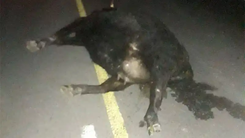 Luego otro auto Chevrolet Clasicc conducido por un hombre de 35 años, que circulaba en dirección contraria, volvió a chocar contra la vaquilla que se encontraba sobre tendida sobre la cinta asfáltica, impactando con la parte delantera izquierda del rodado.
