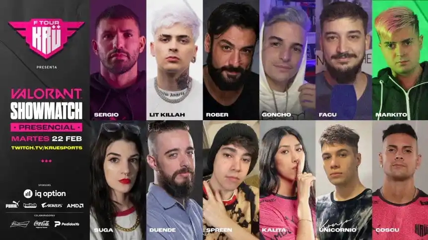 Contará con varios de los streamers más importantes de la región. Bajo el eslogan «El enfrentamiento más troll del año«, KRÜ F TOUR: Edición Valorant enfrentará en una serie de partidas a 10 creadores de contenidos, y no habrá Valorant Champagne aquí tendremos «Valorant que da calambre (pero de los feos)«. Estas partidas contarán con la presencia de reconocidos casters de la escena y estará plagada de divertidos momentos.
