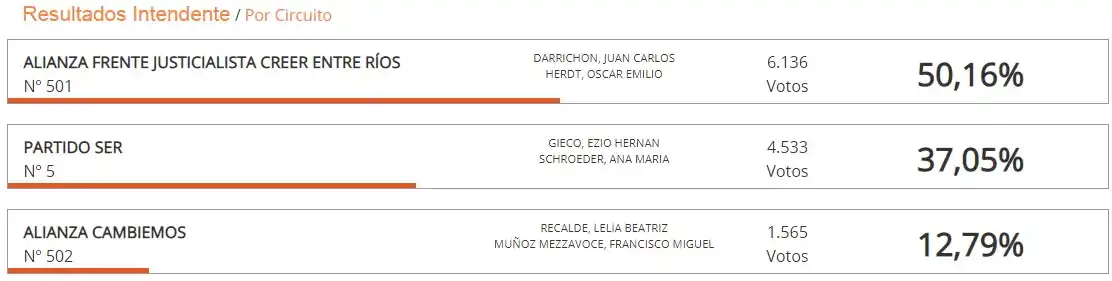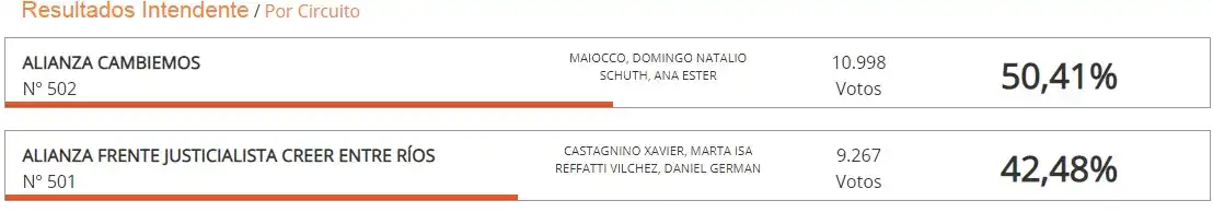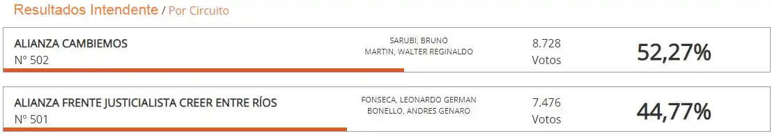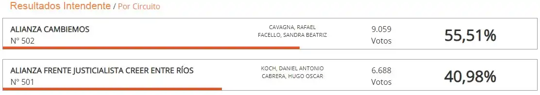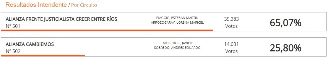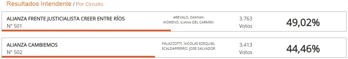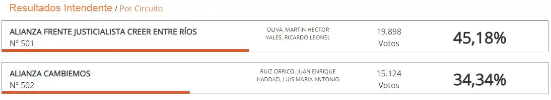 3. Concepción del Uruguay, Martín Oliva (Creer), le ganó a Juan Ruiz Orrico (Cambiemos).