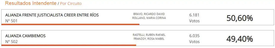 10. Federación, Ricardo Bravo (Creer) se imponía sobre Rubén Rastelli (Cambiemos)