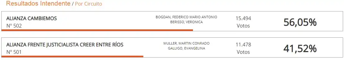 6. Villaguay, Claudia Monjo (Creer) triunfó sobre Enrique Bouchet (Cambiemos)