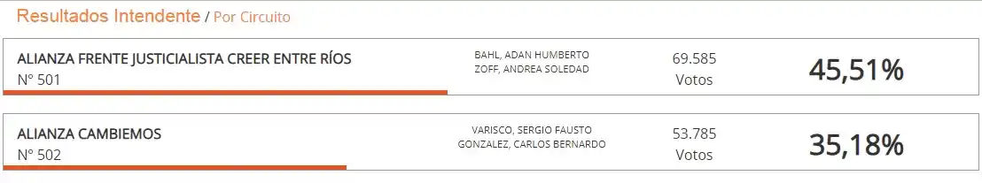 1. Paraná, Adán Bahl (Creer) se impuso a Sergio Varisco (Cambiemos)