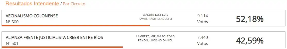 Colón, José Luis Walser (Vecinalismo), se impuso sobre Miriam Lambert (Creer)