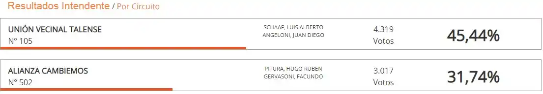 Rosario del Tala, Luis Schaaf (Vecinalista), venció a Hugo Pitura (Cambiemos) y a Mariano Nuñez (Creer)