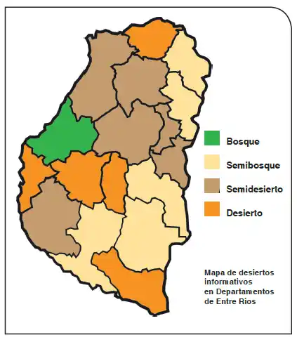 • Como semidesiertos figuran Victoria, Villaguay, San Salvador, Colón, Federal y La Paz; desiertos informativos son: Islas, Diamante, Nogoyá, Tala y Feliciano. El norte, el centro y el resto de la costa del Paraná tienen menor desarrollo periodístico dirigido a la cobertura de lo local.