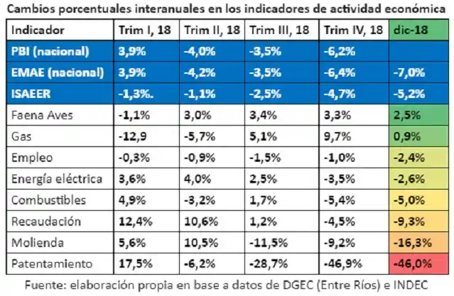 Según datos arrojados por el Índice Sintético de la Actividad Económica de Entre Ríos (Isaer), a los que accedió Paralelo 32, en diciembre del 2018 hubo una baja del -5,2% respecto al mismo mes del año anterior. Esto significa que la actividad económica de la provincia presentó una contracción en el período bajo consideración, más leve que la nacional. Este comportamiento se observó durante todo el 2018.