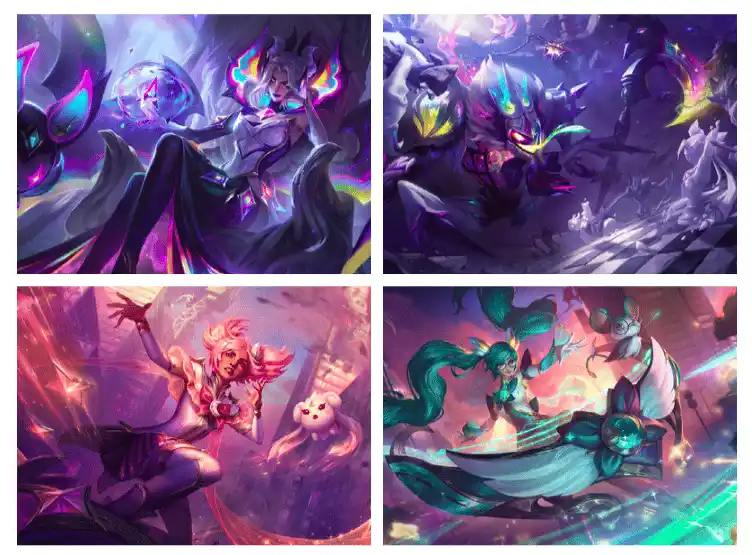 ● Aspectos: Orianna Guardiana Estelar, Seraphine Guardiana Estelar, Ahri Guardiana Estelar, Senna Guardiana Estelar, Xayah Guardiana Estelar, Rakan Guardián Estelar y Miss Fortune Guardiana Estelar; Rakan Guardián Estelar redimido y Xayah Guardiana Estelar Redimida.