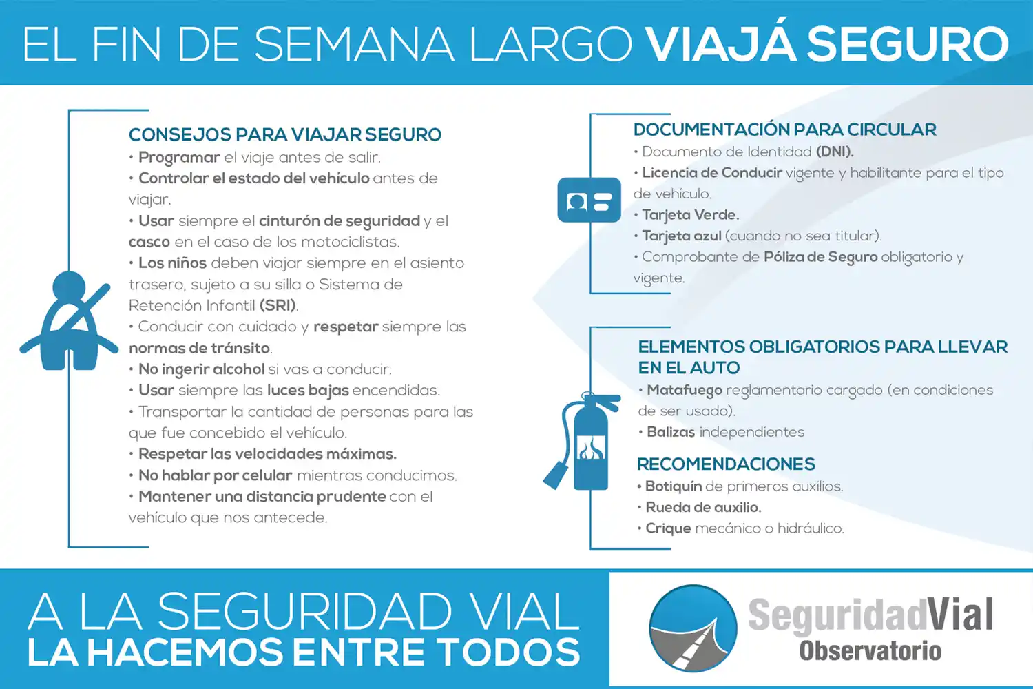Con el objetivo de prevenir siniestros y concientizar a la comunidad sobre las buenas prácticas a la hora transitar las rutas, el Observatorio de Seguridad Vial detalló algunas recomendaciones para viajar seguro.