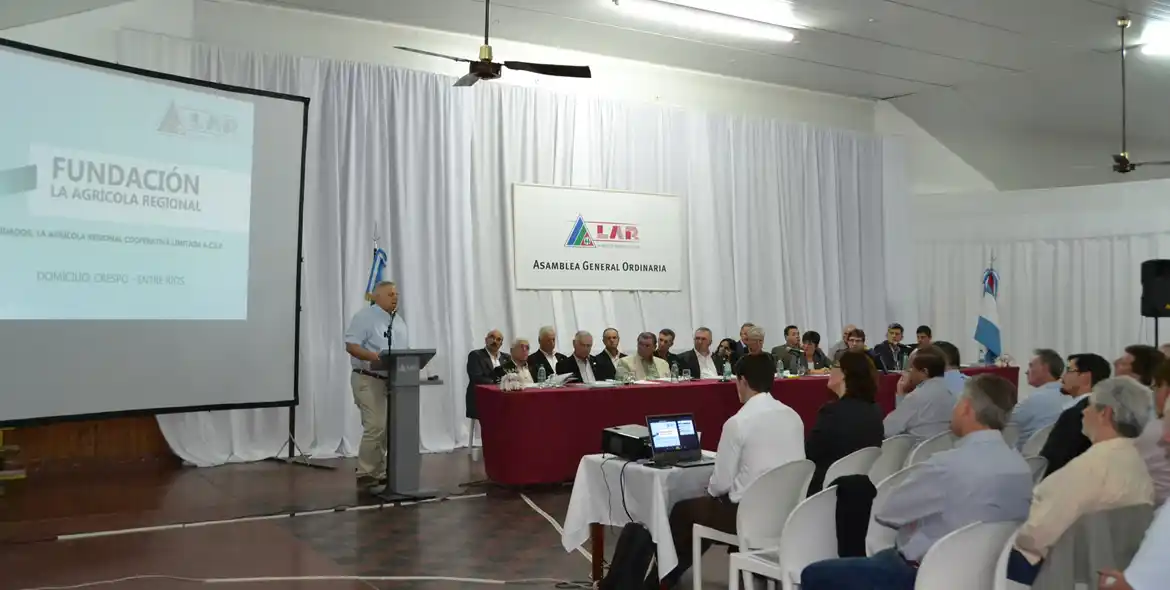 Crespo.- Se cumplió el miércoles 23 una nueva asamblea general ordinaria de La Agrícola Regional Coop. Ltda, correspondiente al ejercicio junio 2018 a junio 2019, durante la cual sus directivos explicaron a los asociados presentes la marcha institucional en sus aspectos económico, financiero y social, y el desenvolvimiento de cada uno de sus 6 rubros, clasificados en 31 secciones, cuya comercialización, distribución y servicios sumó un movimiento de 9.180 millones de pesos en moneda homogénea.