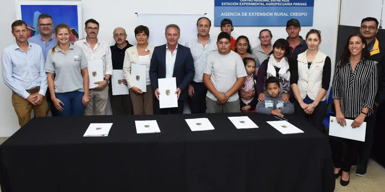 El funcionario señaló que el predio es cedido en comodato y que esta iniciativa fue respaldada este miércoles 10 de abril con la firma de los convenios entre las instituciones participantes y con quienes exploten la huerta. De la rubrica de los convenios participaron el Intendente Darío Schneider; la Gerente Gerenal de LAR, Noelia Zapata de Jacob; el Jefe Agencia de Extensión Rural Crespo del INTA, Ricardo De Carli; el Ingeniero Norberto Usinger en representación de la Fundación Evangélica Argentina, propietaria del Parque Evangélico Los Paraísos; y las familias que llevarán adelante este emprendimiento.