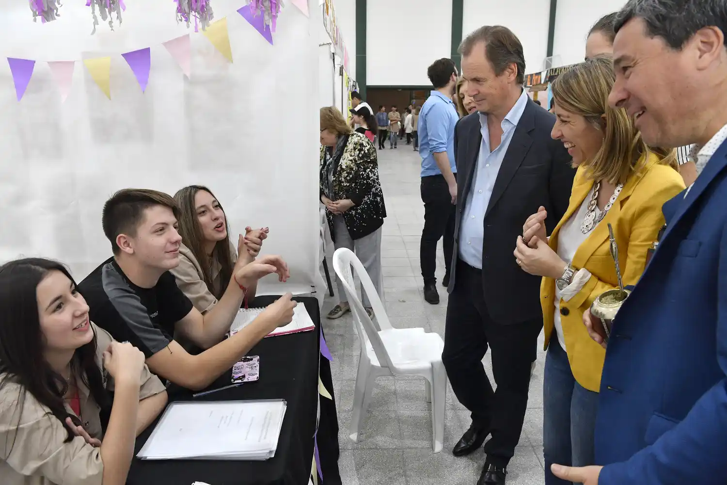 Junto a los ministros de Desarrollo Social, Laura Stratta; de Planeamiento, Luis Benedetto, y de Gobierno, Rosario Romero, además de la presidenta del Consejo General de Educación, Marta Landó, el gobernador Bordet llegó a la Expo Escuela que se desarrolla hasta el sábado en las instalaciones de la escuela de educación técnica Nº 139 De Producción Agro Industrial.