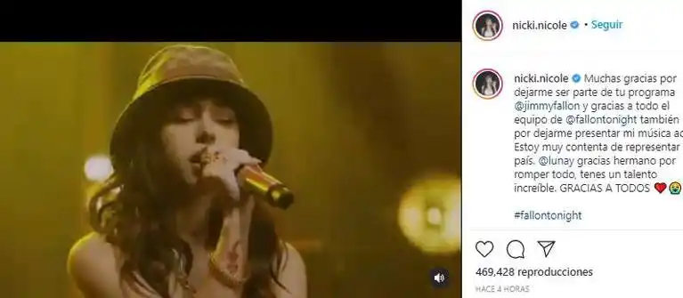 La semana pasada nos enteramos de la gran noticia. Nicki Nicole había contado en sus redes sociales su presentación en el importante programa de la televisión estadounidense, The Tonight Show, que conduce Jimmy Fallon. Un ciclo por donde pasaron las principales estrellas de la música.
