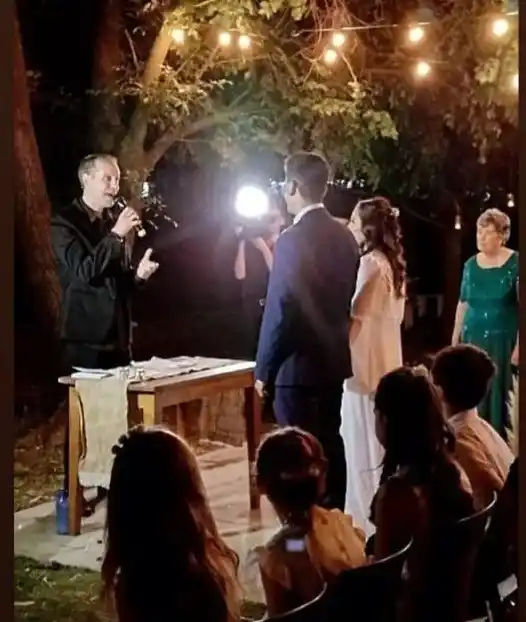 “Esto empezó casi de casualidad, con un colega y amigo que quería una ceremonia especial para su casamiento y me tiró la idea de la boda laica. El y su novia me dijeron qué querían en la ceremonia, en relación a los detalles. Yo nunca había escuchado sobre esto, indagué un poco para conocer de qué se trataba, lo hice y a la gente que estuvo le gustó. Así empezaron a llamarme otras ceremonias o espectáculos parecidos en otras bodas, no solo en Crespo sino también en la región. Hace un par de semanas a través de una nota que me hicieron en un medio de Paraná, se enteraron en Santa Fe y desde allá me contactaron para hacer una ceremonia laica. Pero en líneas generales todo se fue dando con el ‘boca a boca’ de quienes vieron alguna fiesta y ceremonia que conduje y les gustó”, agregó.