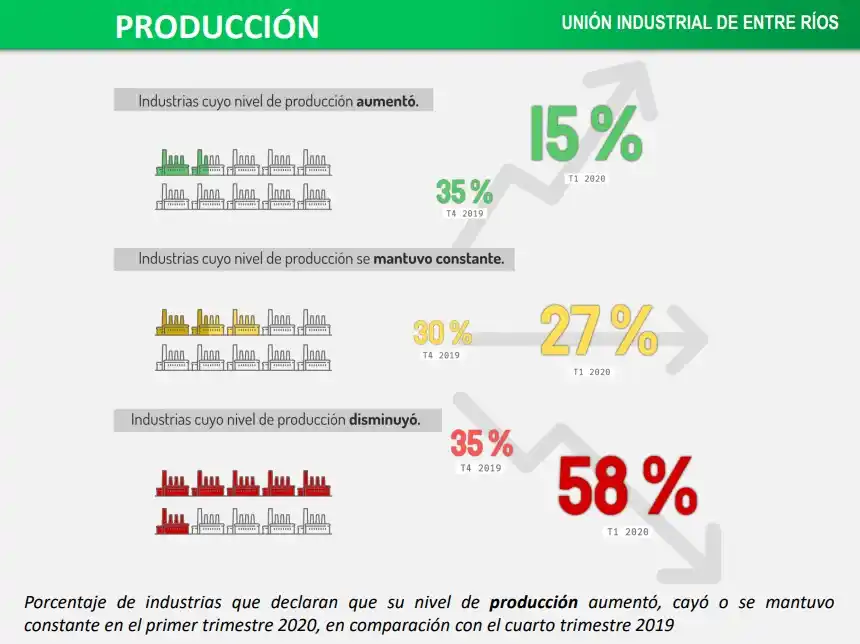 Según el Informe de Coyuntura elaborado por la Unión Industrial de Entre Ríos (UIER), la medida oficial de aislamiento social agravó la situación de la mayoría de las empresas productivas. Más de la mitad de las industrias de la provincia ya registraban caídas en los niveles de producción y de ventas durante el primer trimestre del año.