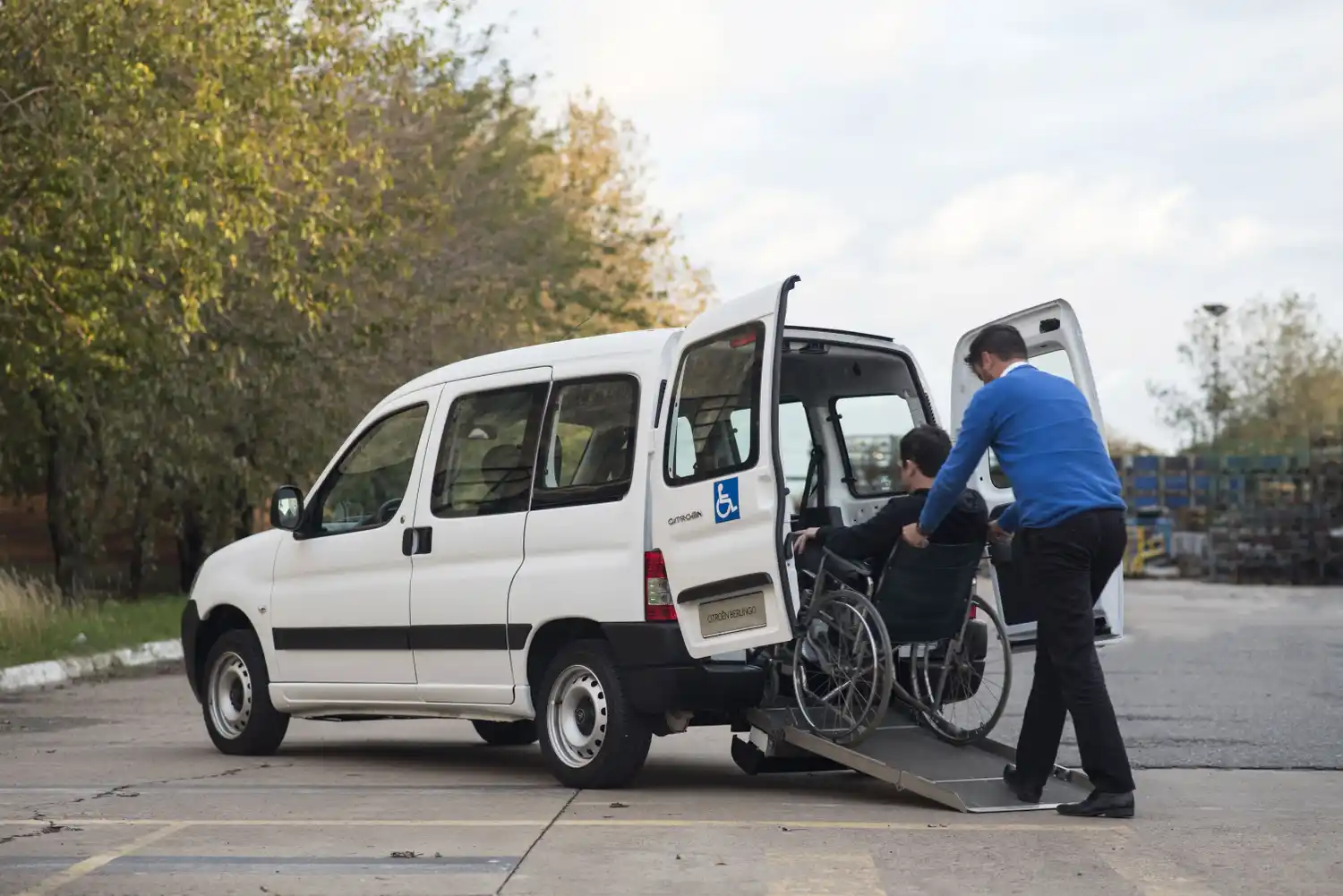 La rampa del Berlingo, que tiene asientos para cinco ocupantes, está guardada a nivel del piso. Cuando se requiere que viaje una persona con su silla de ruedas, el acceso es por la parte de atrás. Se rebaten dos asientos y despliega la rampa con una inclinación adecuada, sube la persona con su silla, se colocan los cuatro anclajes a la silla y el cinturón de seguridad a la persona, la rampa se rebate y queda atrás. Así la configuración es de cuatro personas, una sentada en su silla de ruedas y tres en sus respectivos asientos.