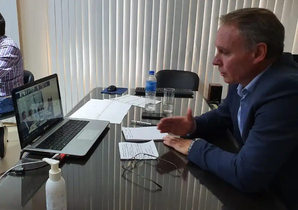 El intendente de Crespo, Darío Schneider, sostuvo una comunicación por videoconferencia con el gobernador Gustavo Bordet. En la charla también participaron otras autoridades provinciales: Laura Stratta (vicegobernadora); y los ministros