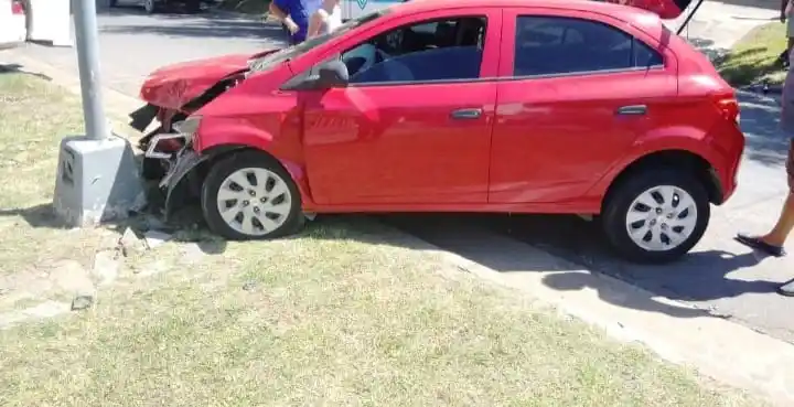 Crespo.- En la mañana de este lunes 10 de enero, un vehículo marca Chevrolet Onix, conducido por una mujer mayor de edad; al momento en que transitaba por calle Berutti en dirección Este-Oeste, sufrió una descompensación que conllevó a que el automóvil subiera el cordón cuneta colisionando con un poste de alumbrado público.