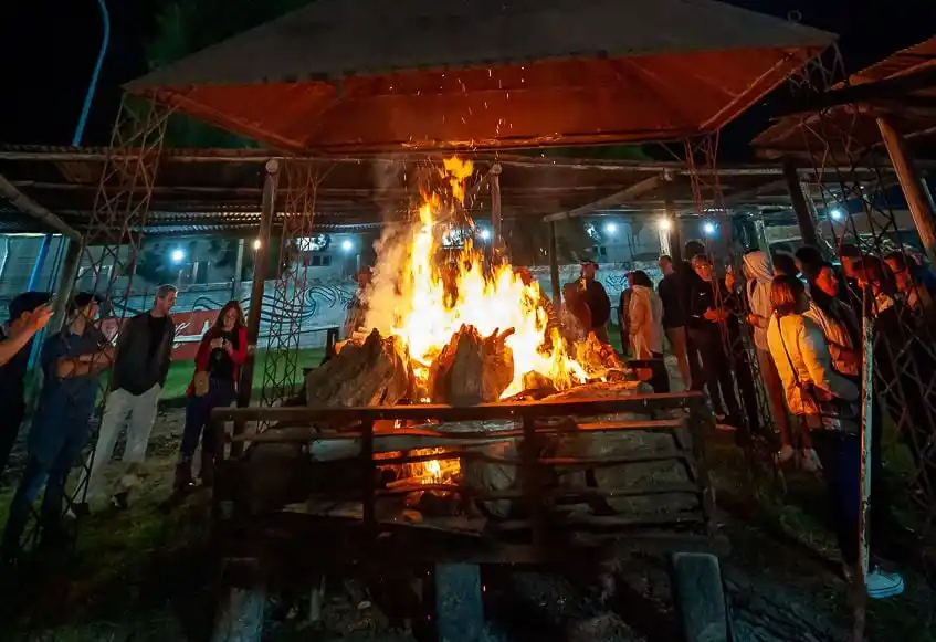 Viale.- Este jueves 18 de noviembre, a las 23:59 horas, la organización de la Fiesta Nacional del Asado con Cuero encendió el enorme fogón se mantendrá prendido hasta el domingo. Habrán pasado más de 50.000 kilos de leña ñandubay y espinillo, llamas incandescentes que producirán brasas y asadores concentrados en mantenerlo vivo para abastecer las parrillas donde se cocinará unas 20 vaquillonas.