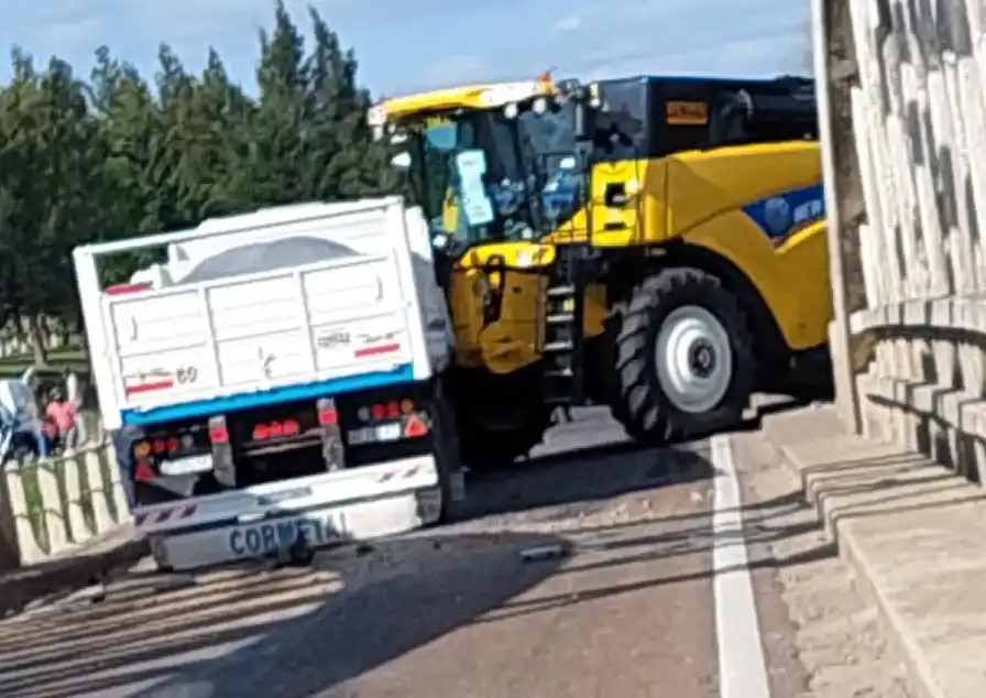 Un camión chocó con una cosechadora sobre el Puente Blanco
