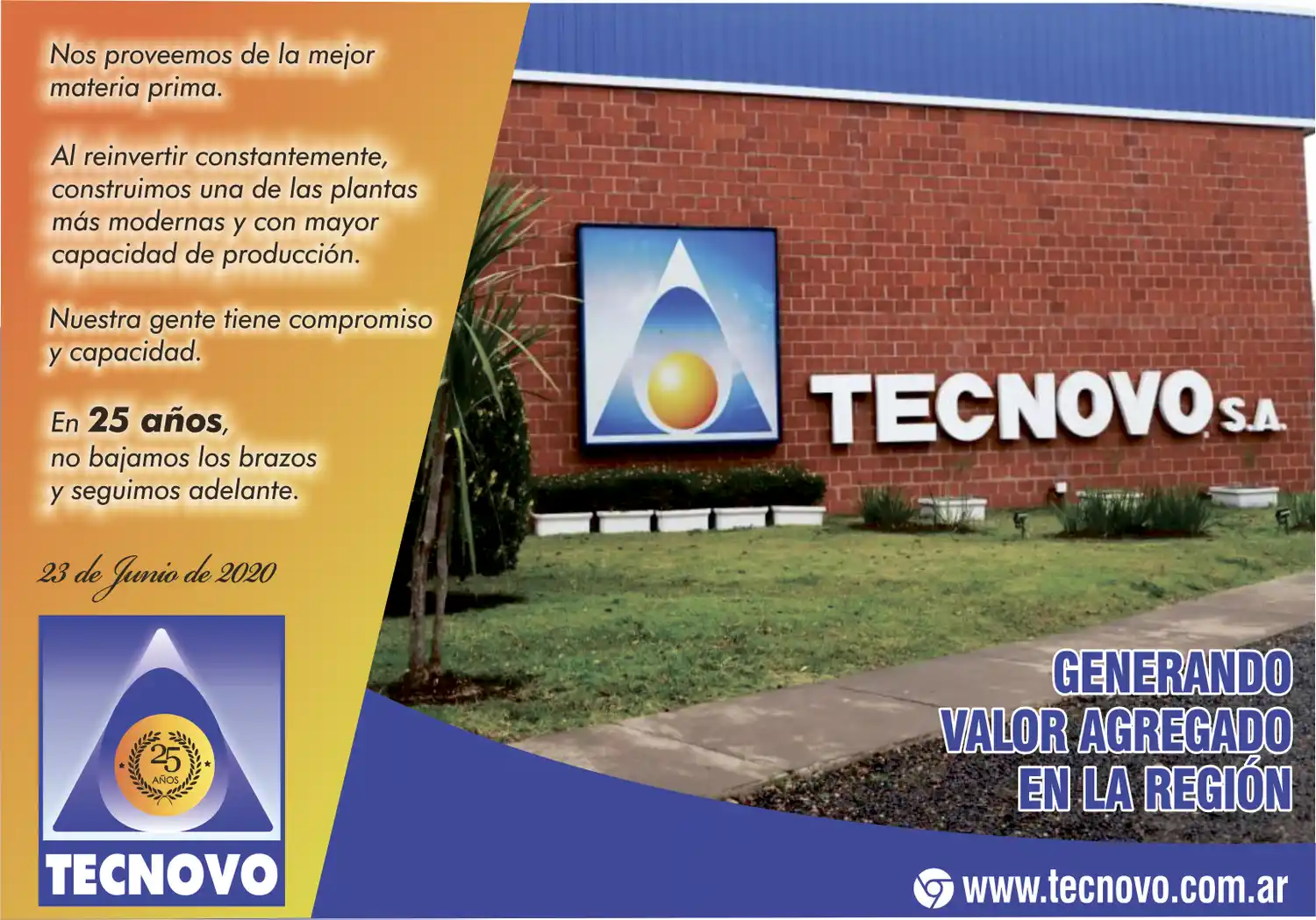 Reinventarse permanentemente y adaptarse a la realidad de los mercados que van evolucionando, fue clave en estos 25 años de vida productiva de la empresa. Otro jalón de esta industria fue la exportación. “El primer embarque que hizo Tecnovo el 3 de diciembre de 1998 fue otro hito. El primer contenedor fue embarcado con destino a Austria. Recuerdo que con Pedro Moro, en el vidrio que separaba la oficina en ese momento tuvimos mucho tiempo escrita esa fecha, porque era todo un acontecimiento”.